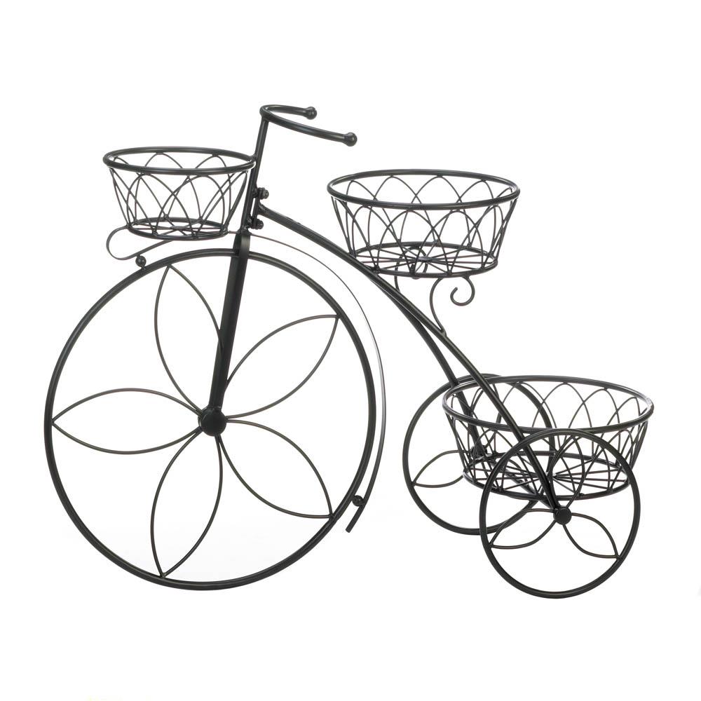 • Holds three plants and can be displayed in your flower garden, on a patio, deck, or sunroom. This charming bicycle plant stand is perfect to show off your favorite potted plants.