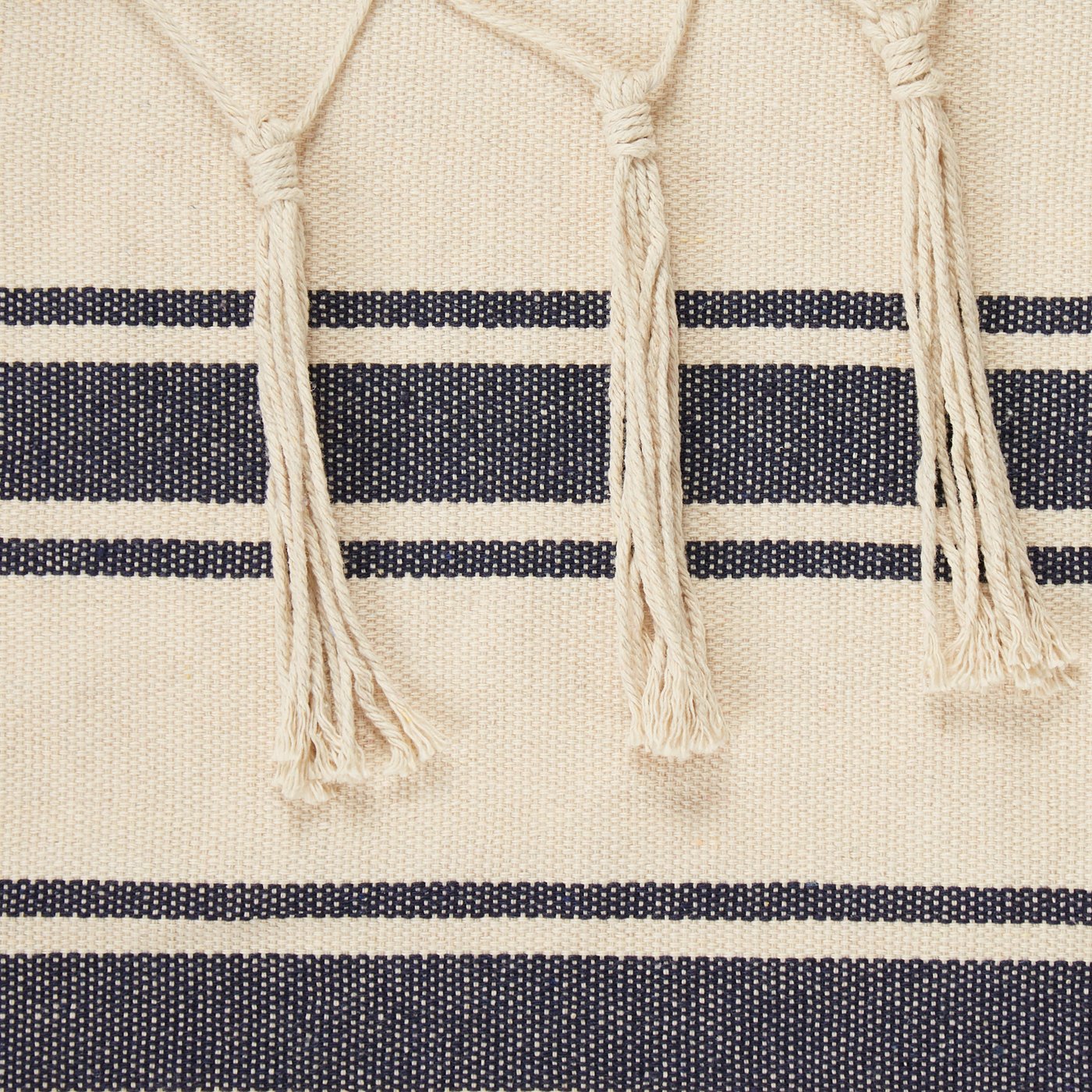 Fringed Blue & Cream Ticking Stripe Hammock Chair