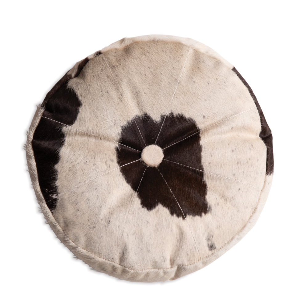 Embrace the natural elegance of genuine cowhide as you add a touch of sophistication to any space. This unique round throw pillow is sized perfectly to be versatile. Made from real cowhide, the back is 100% cotton and is stuffed with a comfy polyfil material. This pillow does not feature an insert, as it is a sown-together piece.