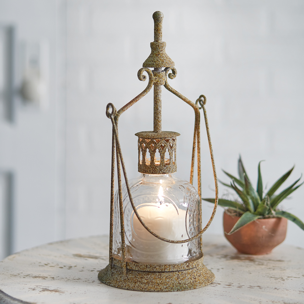 Crafted with precision and passion, the Thornehill Terrace Lantern boasts rustic elegance. Its graceful lines, inspired by vintage lanterns of yesteryears, exude a sense of nostalgia and sophistication. This item features intricate, detailed glass and holds up to a 3'' dia. pillar candle. With the handle extended, this lantern measures 16½''H.