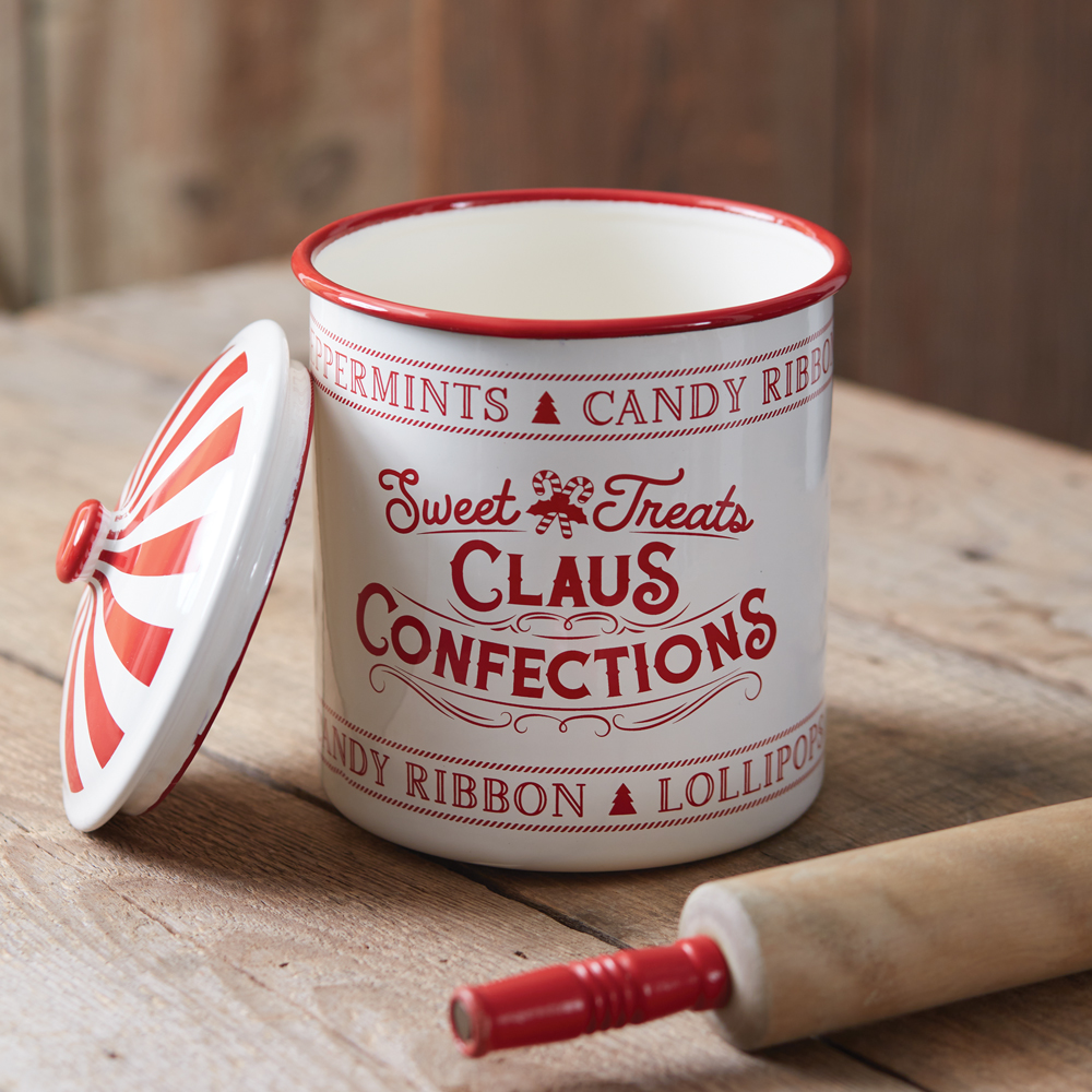 Claus Confections Enameled Christmas Container Claus Confections Enameled Christmas Container Claus Confections Enameled Christmas Container
