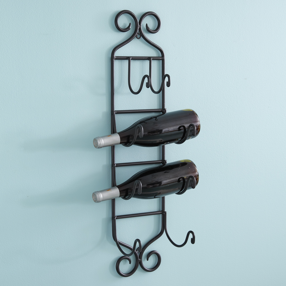 Emulates vines growing against a wall. This wrought iron towel rack holds four bath towels. Hangs 27½'' down 7'' wide and 6'' deep. Towels are not included.