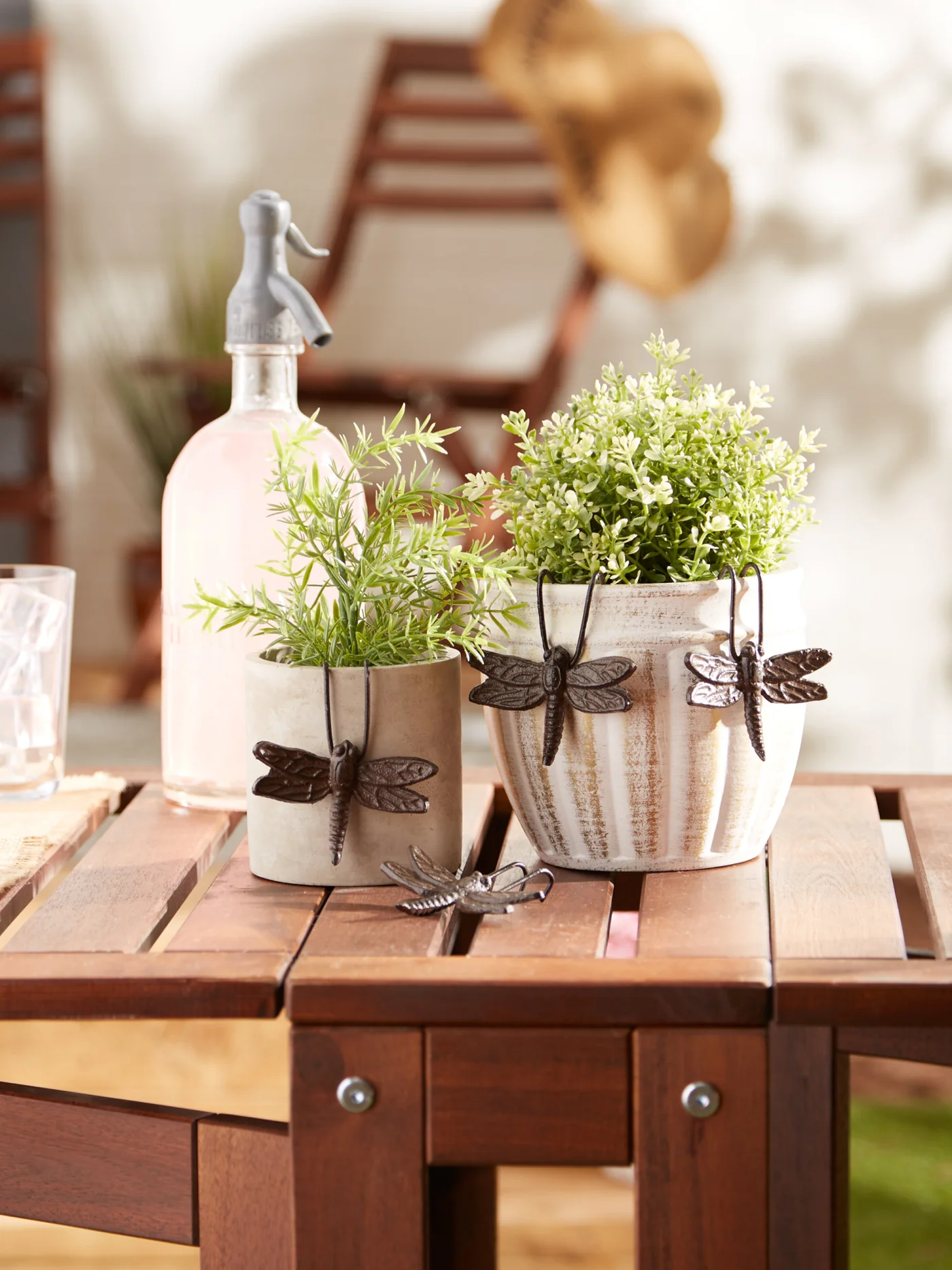 • Decorative dragonfly planter pot hanger is made from durable cast iron and perfect for decorating your flower pots and baskets in your yard and garden.